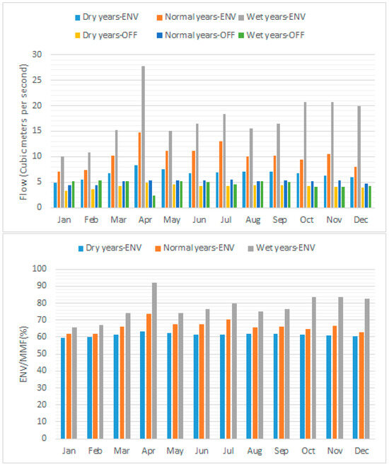 Finalized ecological flow regime downstream of the river (SR5). MMF means monthly mean flow and ENV means ecological flow.