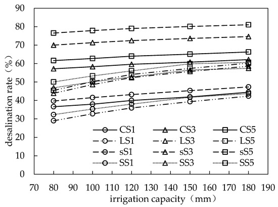 The soil desalination rate is used to characterize soil salinity reduction after irrigation relative to the initial value. The formula is as follows: