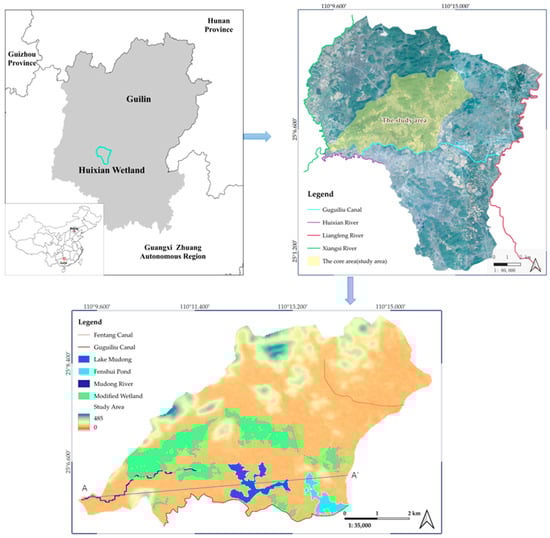 The geographical location of Huixian karst wetland is 30 km from the Guilin urban area, southwest of China.