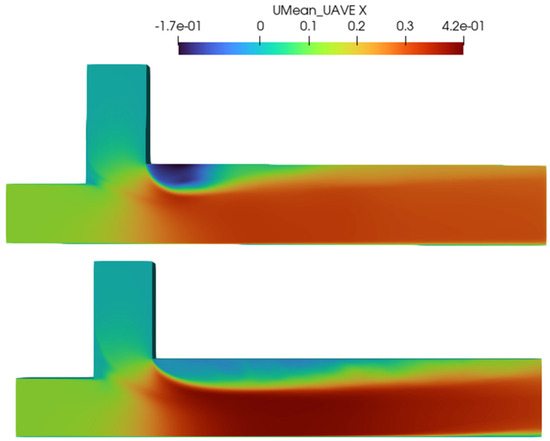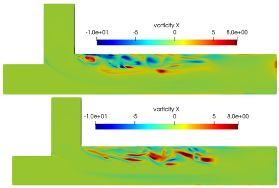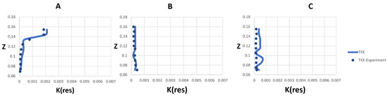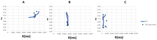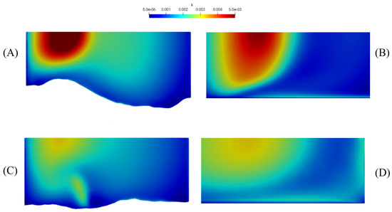 Pope (2004) [51] suggested that in order to use LES models effectively, it is important to resolve at least 80% of the TKE (kres) on the mesh. According to Equation (21), over 80% of the cells in both simulations meet this requirement.