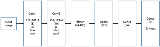It is essential to first cluster the precipitation types to predict precipitation using a cluster model when new data are input. Therefore, the results of SOM and k-means clustering were trained on the CNN to appropriately cluster new radar images of precipitation. The CNN architecture consisted of two layers with (5, 5) kernels, followed by (2, 2) max pooling, and it utilized the Swish activation function. Finally, softmax activation is applied to the dense layer (Figure 5).