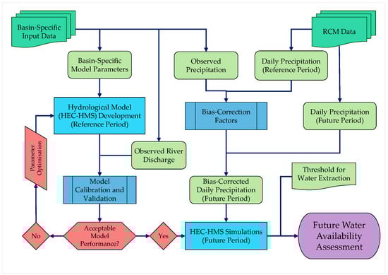 Throughout history, mankind has confronted countless difficulties due to varied climatic conditions [1], and foreshadowed climate change projections show that the 21st century is most likely to be even more challenging. Thus, human well-being in the future is closely linked with the ability to manage risks related to climate variability [2]. In this regard, climate services are needed by the decision-makers to support the adaptation/mitigation activities against climate-change-driven impacts such as depleting water resources, droughts, heat waves, floods, and coastal erosion [3,4,5,6], in which sufficient, safe, and convenient water and sanitation services are fundamental prerequisites for societal advancement and individual well-being [5,7,8]. These services are indispensable for fostering economic development, as they underpin various industries and agricultural practices reliant on water resources. Moreover, access to clean water and adequate sanitation is pivotal in safeguarding public health by mitigating the spread of waterborne diseases and reducing morbidity rates [8,9], and ensuring the availability of safe drinking water, sanitation, and hygiene is a UN Sustainable Development Goal [10].
