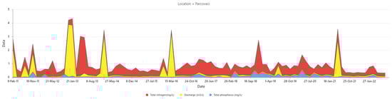 A statistical evaluation of discharge and nutrient links in different locations revealed weak correlations only for some particular cases: TN–TP in Parcovaci, TN–discharge in Belcesti, and TN–discharge and TP–TN in Holboca. Therefore, the analyzed data cannot support the initial hypothesis that the analyzed characteristics are correlated. This suggests a highly complex interaction between many factors, and a more in-depth study with a higher frequency of data acquisition, more locations, and a higher number of parameters such as chemical and biochemical oxygen demand, water and air temperature, and precipitation level is required.