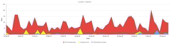 To the authors’ knowledge, such a comprehensive report with such a manner of data interpretation on the Bahlui River has never been published. However, some reports regarding nutrients’ evolution/concentrations have been presented in local or low-circulation magazines [10,11,12,13]. These reports only present daily analysis and/or short periods of nutrient/pollutant evolution and are usually focused on specific areas, such as the Iasi municipal area [14,15]. The flow discharge data span a longer period (2005–2022) than the nutrient monitoring (2011–2022), having been systematically conducted at the sites studied since 2011.