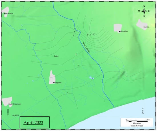 - Gkiougkis, I.; Adamidis, A.; Empliouk, I.; Karasogiannidis, D.; Pliaka, C.; Tzevelekis, T.; Pliakas, F.-K. Research for The Conceptual Model Development of River Lissos Coastal Aquifer System, NE Greece. In Proceedings of the 16th International Congress of the Geological Society of Greece, Patras, Greece, 17–19 October 2022; pp. 450–451. [Google Scholar]