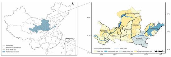 In this study, we take the Yellow River Basin as the study area, which is located in northern China and involves Qinghai, Gansu, the Ningxia Hui Autonomous Region, the Inner Mongolia Autonomous Region, Shaanxi, Shanxi, Henan, and Shandong province (Figure 2). According to the scope of the natural geographical boundary of the Yellow River Basin, a total of 78 prefecture level cities are involved.