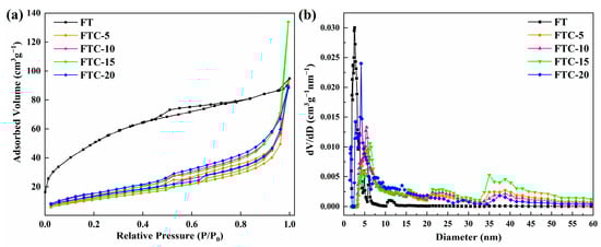 (a) N2 adsorption–desorption isotherms and (b) pore size distribution of FT and FTC samples.