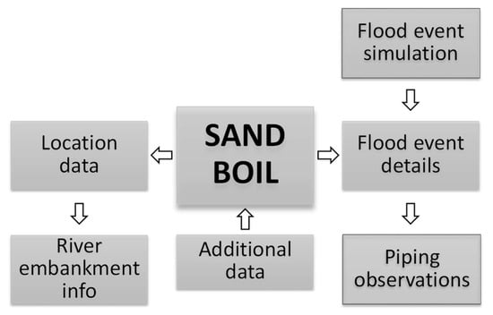 Scheme of the database structure, with particular reference to the section “sand boil”.
