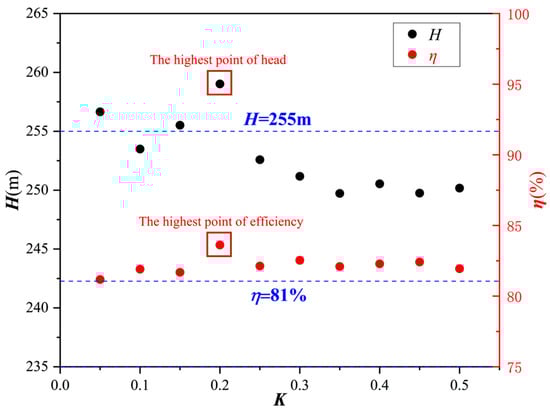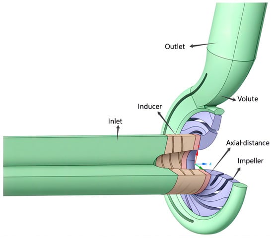 Here, 10 sets of models with different axial distances KD (K = 0, 0.05, 0.1, … , 0.5, 0 being the original model) were selected for the study, where D represents the inlet diameter of the impeller.