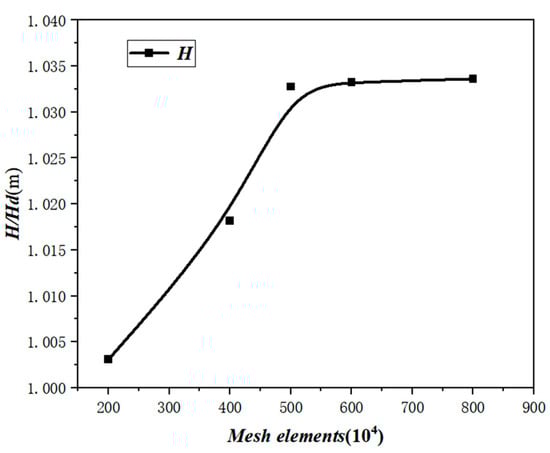 The results of CFD numerical simulations are influenced by multiple factors. To mitigate the impact of grid quantity on numerical calculation accuracy and ensure the simulation data become more accurate and reliable, five sets of models with different grid quantities were selected for simulation analysis: 2 million, 4 million, 5 million, 6 million, and 8 million grid quantity models. The performance of each grid model’s head was observed.