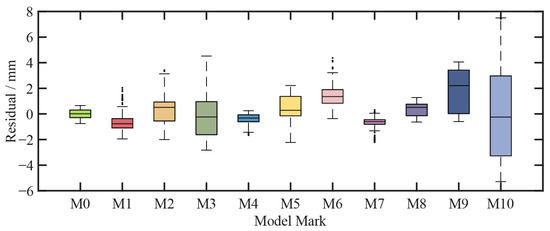 Of the above models, M1 does not spatially partition the deformation points. It takes into account the spatial influence exerted by all measurement points on the target measurement points to demonstrate the effectiveness of the deformation spatiotemporal clustering module. M2 does not input SIFs and aims to demonstrate the effect of spatial correlation on the deformation. M3 and M4 aim to demonstrate that the SMVMD module can extract potential features in multiple points and improve performance. M5, without inputting load factors, is designed to demonstrate the impact of environmental parameters on the deformation. M6 aims to compare the prediction accuracy between the autoregressive and the factorial regression models. M7 eliminates the factor-screening module and explores the impact of mRMR on prediction accuracy. M8 is used to compare the prediction accuracy of different models by replacing advanced deep learning algorithms with simple machine learning algorithms. M9 is used as a deep learning benchmark model to test the effectiveness of modules such as spatiotemporal clustering, multivariate decomposition, factor screening, and SIF inputting. M10 is used as the most basic machine learning model to compare with M0, highlighting the superiority of the performance of the proposed framework.