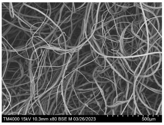 Geotextiles have a three-dimensional fibrous network structure made of short fiber polypropylene material with a fluffy structure and large porosity, which makes them permeable and filterable (Figure 2). To clarify the impact of geotextile stacking on the salt discharge and anti-clogging effects of subsurface pipes, experiments were conducted in the Yanzidun Township from May to September 2022 based on a self-designed laboratory simulation device for subsurface pipe drainage. The geotextiles wrapped around the subsurface pipes were designed with three different scenarios: single-layer geotextile (T1), double-layer geotextiles (T2), and triple-layer geotextiles (T3), with three replicates for each scenario. The geotextile used in the experiment was a short fiber needle-punched nonwoven geotextile made of polypropylene, with a specification of 100 g∙m−2, a density of 1.35 ± 0.12 g∙cm−3, a thickness of 0.75 ± 0.04 mm, a breaking strength of 2.5 ± 0.13 kN∙m−1, a tearing strength of 0.08 ± 0.01 kN, a vertical permeability coefficient of 0.06 ± 0.01 cm∙s−1, and an equivalent diameter O90 of 0.12 ± 0.01 mm. The geotextile used in the experiment has good alkaline resistance and can be used below pH 9.0. The nonwoven geotextile is a flake with good water collection and drainage performance.