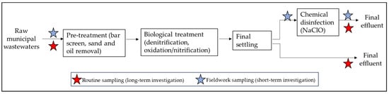 Scheme of the sampling strategy along the wastewater treatment stages.