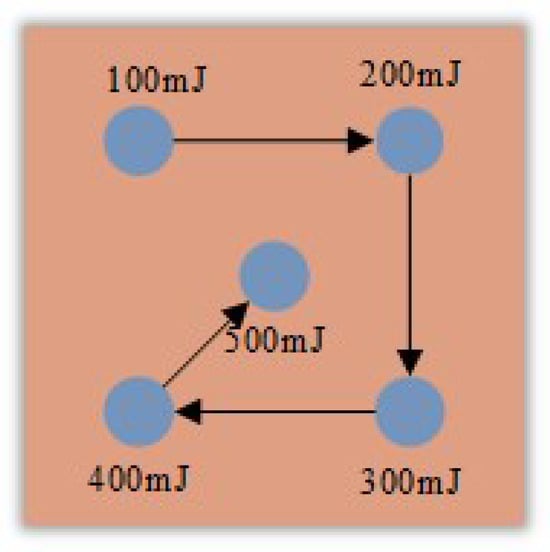 To investigate the technology of LICB fabricate micro-dimple formation, experiments were conducted with different absorption layers and laser technology parameters. Specifically, absorption layers of 100 μm black paint, 100 μm copper foil, and no absorption layer were used. The specific parameters for LICB impact are detailed in Table 2, and the paths of single dimple at different energy levels are shown in Figure 2.
