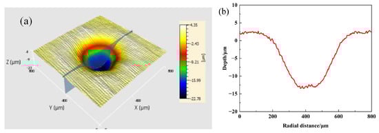 Surface morphology of micro-dimple with LICB. (a) Three-dimensional morphology; (b) central cross-sectional profile.