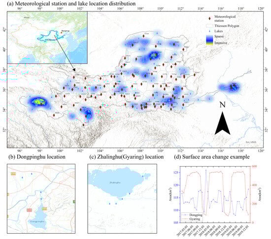 Initially, we utilized GISPro and R language tools for our analysis. Based on meteorological station data and the boundaries of the Yellow River Basin, Thiessen polygons were generated for each weather station. These polygons facilitated the linkage between weather stations and lakes according to the spatial attributes of the Thiessen polygons (Figure 1a), thereby establishing a database for both lake surface area and meteorological time series.