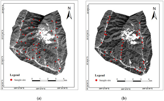 Distribution of sampling points in the study area in (a) 2017 and (b) 2019.