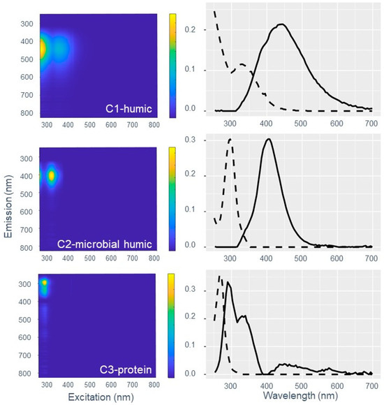 - Stedmon, C.A.; Bro, R. Characterizing dissolved organic matter fluorescence with parallel factor analysis: A tutorial. Limnol. Oceanogr. Methods 2008, 6, 572–579. [Google Scholar] [CrossRef]