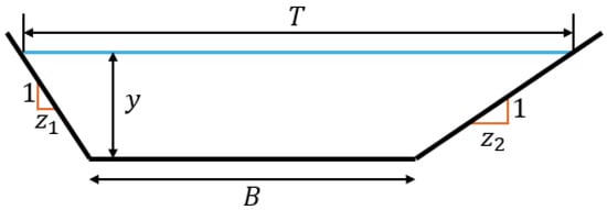) for a trapezoidal section, featuring distinct left and right side slopes, is expressed as follows: