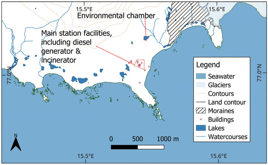 Location of the environmental chamber (sampling site) in relation to the potential local sources of anthropogenic pollution at Hornsund (diesel power generator and high-temperature waste incineration facility).