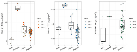 - Wong, F.; Hung, H.; Dryfhout-Clark, H.; Aas, W.; Bohlin-Nizzetto, P.; Breivik, K.; Mastromonaco, M.N.; Lundén, E.B.; Ólafsdóttir, K.; Sigurðsson, Á.; et al. Time trends of persistent organic pollutants (POPs) and Chemicals of Emerging Arctic Concern (CEAC) in Arctic air from 25 years of monitoring. Sci. Total Environ. 2021, 775, 145109. [Google Scholar] [CrossRef]