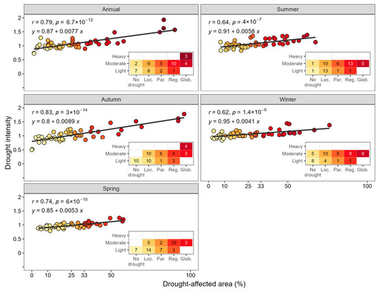 Classification of drought-affected area based on (stations proportion, %) [61].