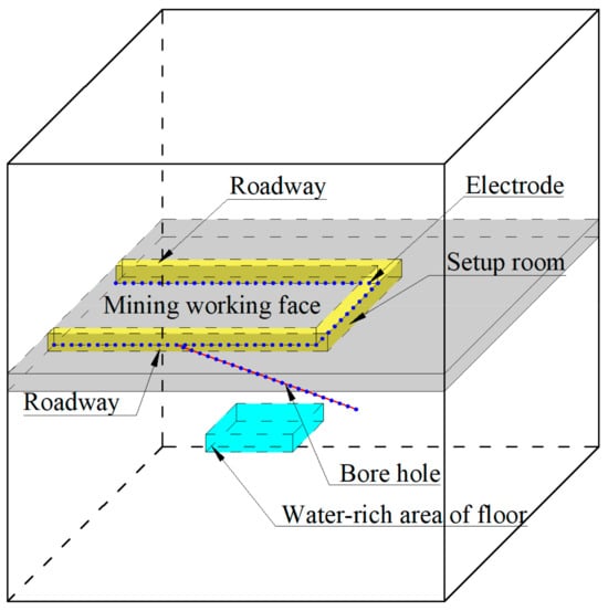 Figure 8. Schematic diagram of the layout of construction using the 3D resistivity method in mines.