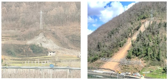 Considering these datasets, Italian Civil Protection has defined emergency plans that indicate the strategies to deal with the effects of geo-hazards at different regulation levels (municipalities, provinces, and regions) [8,22,23,24]. Following these indications, infrastructure stakeholders are starting to provide “resilience plans”. The former are documents where strategies against threats are involved in potentially increasing infrastructure resilience [25,26,27,28,29]. The partial failure of the electrical system may have a lot of repercussions on several sectors of human lives, especially during post-disaster emergency phases where power supply is a fundamental resource for local community recovery [22,30]. Geo-hydrological threats are, therefore, currently under investigation because they could seriously undermine the operativity and functionality of electro-energetic infrastructures [31,32,33], as highlighted by several episodes recorded in the past across Italian territory [2,15,16,34]. Severe floods may affect the operativity of dams and reservoirs because they have a crucial role in balancing extreme hydrological conditions and protecting downstream areas [8,28,35,36]. On the other hand, powerlines and power plants may be hit by landslides, causing local infrastructure failures and blackouts that may propagate through the whole electrical network [27,37,38,39,40] (Figure 1). In particular, rainfall-induced shallow landslides have been reported to be a common and rather destructive threat to powerline pylons [27]. These types of landslides are characterized by shallow depth (up to 2 m, reaching the bedrock) but with a significant planimetric extension [41]. They are triggered by terrain saturation due to the rainfall infiltration processes [42] and include soil slips and earth flow, which, in the presence of large amounts of water (i.e., terrain saturation and overland flow), may evolve into debris flows [43].