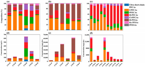 - Cui, R.; Zhang, Y.; Wang, J.; Dai, J. Levels and Composition Distribution of Perfluoroalkyl Substances in Water and Biological Samples from Jiangsu Hi-Tech Fluorochemical Industry Park in Changshu, China. Environ. Chem. 2013, 32, 1318–1327. [Google Scholar] [CrossRef]