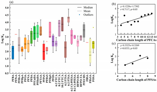 - Li, W.; Liu, X.; Mao, H.; Wang, S. Concentration, Distribution, and Bioconcentration of Short- and Long-Chain Perfluoroalkyl Substances in the Water, Suspended Particulate Matter, and Surface Sediment of a Typical Semi-Enclosed Bay. Sci. Total Environ. 2023, 890, 164416. [Google Scholar] [CrossRef] [PubMed]