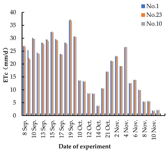 This experiment was conducted during two critical growth periods, the fruit expansion stage and the color change and sugar increase stage, while it was crucial for guaranteeing the quality of citrus fruit and water-saving irrigation to meet the water consumption of citrus in all growth periods using precise irrigation [40], and the subsequent research will be carried out on the ET of citrus throughout the whole growth period.
