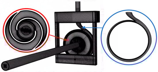 Figure 5 illustrates the relationship between the number of grid cells, MSE of the head, and computational resources. When the number of grid cells exceeds 2.1 million, the change rate of MSE of the head is less than 3%, indicating that the grid scheme at this point has little impact on the computational results. At the same time, in order to save computational resources and time, the grid scheme with the least required computational core hours when MSE is less than 3% was selected. As shown in Figure 5, the most suitable grid scheme is the one with 2.1 million grid cells. The final grids used for simulation are shown in Figure 6, where all grid cells are structured and all wall surfaces are treated with a refined boundary layer.