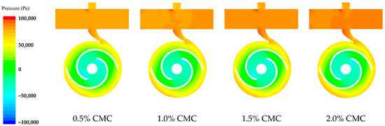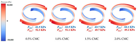Pressure contour maps of different concentrations of CMC solution inside the pump.