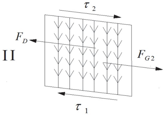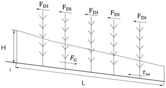 Assuming that the plant dam section with a length of L, as shown in the figure, is under constant and uniform flow conditions, according to the principle of force balance, a dynamic equation is formulated along the direction of water flow. Perform force analysis on the two parts of the water body separately, as shown in Figure 5 and Figure 6.