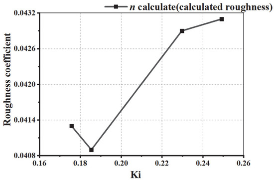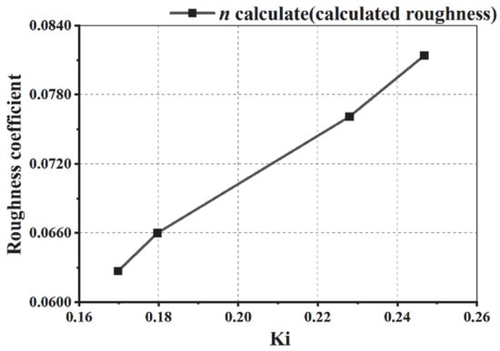 From Table 9, we can conclude that under the current working conditions of reed grass, as the water surface coverage rate Ki of reed grass increases, the calculated roughness also increases. And an increase in Ki can lead to an increase in comprehensive roughness. The intuitive representation of the calculation results is shown in Figure 11. In the figure, the water surface coverage Ki of reed grass is directly proportional to the calculated roughness.