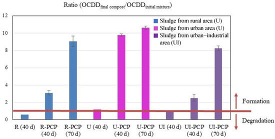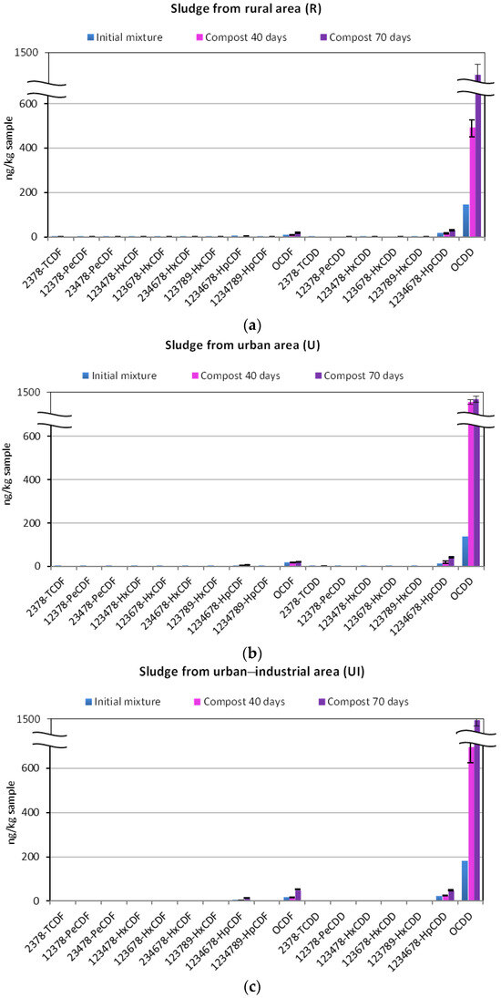 - Muñoz, M.; Garrido, M.A.; Gomez-Rico, M.F.; Font, R. PCDD/F Determination in Sewage Sludge Composting. Influence of Aeration and the Presence of PCP. Sci. Total Environ. 2018, 616–617, 763–773. [Google Scholar] [CrossRef] [PubMed]