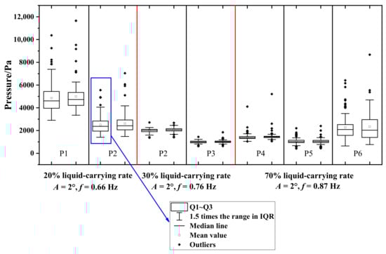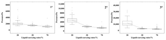 The repeatability of the pressures measured by the sensors at different measuring points with different liquid-carrying rates was examined by repeating the test two times.
