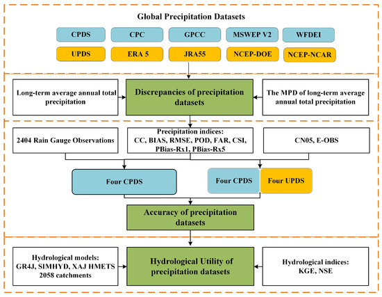 The workflow for evaluating precipitation datasets used in this study.