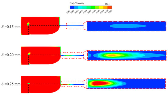 Eddy viscosity distribution of R6 cross-section with different clearances.