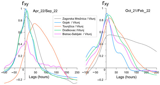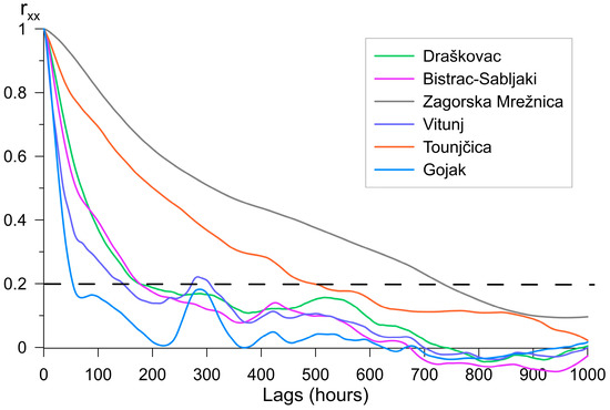 - Pavlić, K.; Parlov, J. Crosscorrelation and Cross-Spectral Analysis of the Hydrographs in the Northern Part of the Dinaric Karst of Croatia. Geosciences 2019, 9, 86. [Google Scholar] [CrossRef]