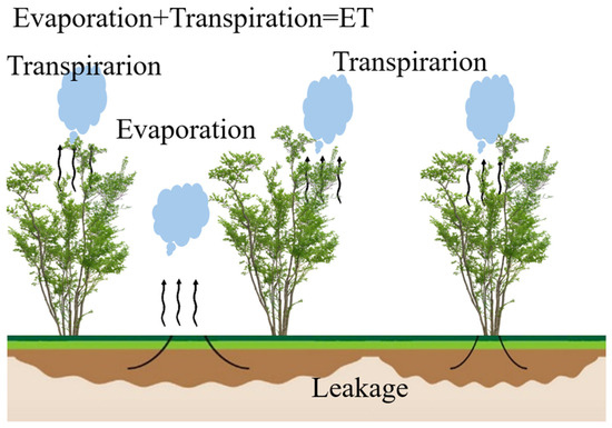 Schematic diagram of crop water demand mechanism. Tip: ET: The process of moving water from the Earth’s surface to the atmosphere, including evaporation of liquid or solid phase water from the soil and plant surfaces and transpiration by plants.