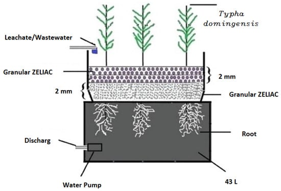 The study showed that using a CW consisting of two layers of adsorbent materials (zeolite and ZELIAC) resulted in effective pollutant removal, as shown in Figure 5. The accumulation of nickel and cadmium in the roots and shoots of Typha domingensis plants cultivated in the CW was also monitored. These studies shed light on the effectiveness of integrating different treatment processes for treating wastewater and dairy wastewater and improving pollutant removal and treatment efficiency.