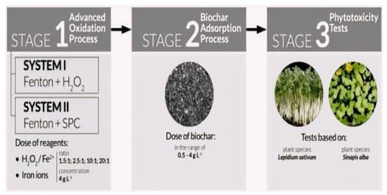 In studies conducted by Moradi and Ghanbari [], Cheibub [], and Amor [], they focused on the removal of COD from LL using the combined C/F and Fenton or photo-Fenton treatment processes. Moradi and Ghanbari [] employed the combined C/F and Fenton processes for young LL treatment. In the study, the C/F process using FeCl3 was employed as a pre-treatment process for young LL. After that, the leachate was subjected to the Fenton process to degrade it. The research employed RSM for the experiment design, modeling, and data analysis. Based on the germination index, which significantly increased following the C/F and Fenton processes, a phytotoxicity test was also carried out.