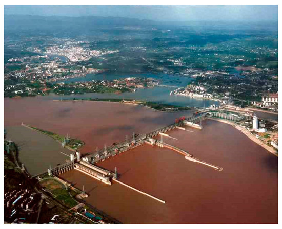 As shown in Figure 3, the dam was built on the Yangtze River in China. It is 2595 m long with a maximum depth of 47 m. It contains two power stations (Dajiang and Erjiang stations), with a total electric generating capacity of 2.71 GW. The construction of the dam began in 1970 and was completed in 1988. Some basic information about the Dam is listed in Table 1.