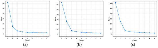 The evaluation curve of k-value selection. (a) Stress, (b) strain, and (c) temperature.