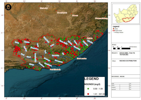 Spatial distribution of nitrate and nitrite within the WMA7 [33].