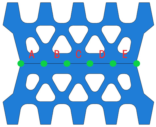 From Figure 15, it is clear that the uneven distribution of the permeation stress barrier, which is formed by the initial contact stress, significantly affects the waterproof performance of the sealing gasket at the junction of shield tunnel segments. To further explore the relationship between the permeation stress barrier and the waterproof performance of the gasket, the interface between the sealing gaskets is divided into five stages, as shown in Figure 20. In each stage, when the water surpasses the flow resistance caused by the contact stress of the sealing gasket, seepage occurs between the sealing gaskets. By using the pressure-weighted average value of water when the gasket is breached as a threshold to represent the waterproof performance, we can provide a quantitative reference for the waterproof performance of the elastic rubber sealing gasket under specific conditions.