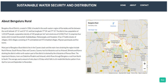 The user selects the country, state, and the district on the starting page (Figure 5). Once the complete details are put in, the program leads to the next page (Figure 6), which provides some background data about the selected region. Upon clicking the ‘Next’ button, the screen shown in Figure 7 appears. This is the stage where the user inputs are provided (Figure 7).