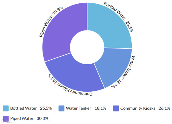 The domestic requirements for drinking water are assessed by taking the human population into account. In rural areas, human drinking water requirements are roughly 150 litres per capita per day (LPCD), while in urban areas it is estimated to be 200 LPCD. Compared to rural households, the drinking water supply is substantially better in urban areas, where residents have access to tap water. However, in many rural locations, the insecure status of the drinking water supply is amplified by poor water quality. In India, about 22% of households lack access to clean and safe drinking water from a tap, tube well, and hand pump sources [9]. As a result, in rural regions, it becomes the responsibility of women and children to walk long distances to obtain water from wells and streams for daily requirements [10].
