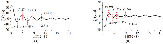 where ξA0 is initial displacement, is the damping coefficient, and is the natural frequency considering the water damping. is the dimensionless decay coefficient.